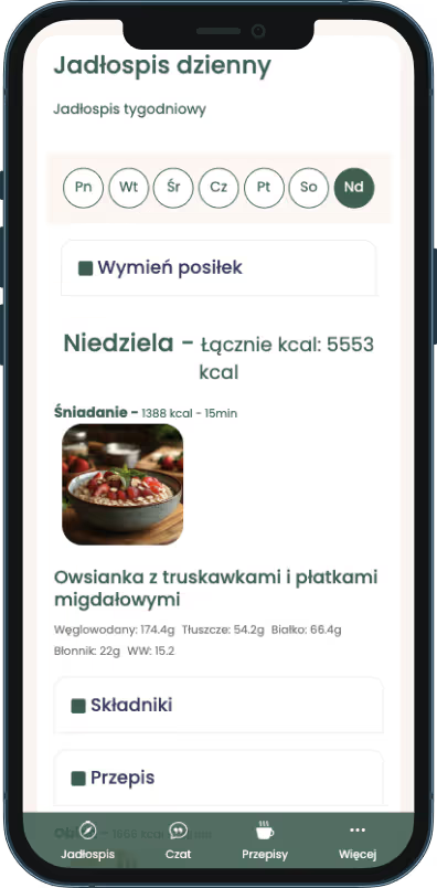 Podziel się swoimi celami, preferencjami smakowymi oraz produktami, które chcesz wykluczyć. Dzięki temu stworzysz plan żywieniowy, który daje Ci pełną kontrolę nad swoim zdrowiem i radość z jedzenia.