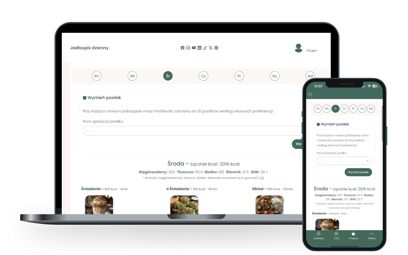 Nasze plany żywieniowe są maksymalnie dostosowane do Twoich indywidualnych potrzeb, stylu życia, preferencji smakowych i celów zdrowotnych. Dzięki temu dieta nie jest jedynie zestawem sztywnych reguł, ale dynamicznym planem, który można modyfikować w zależności od sytuacji. Możliwość wyboru i zamiany posiłków oraz składników sprawia, że dieta jest łatwiejsza do przestrzegania.